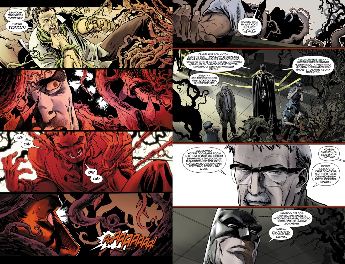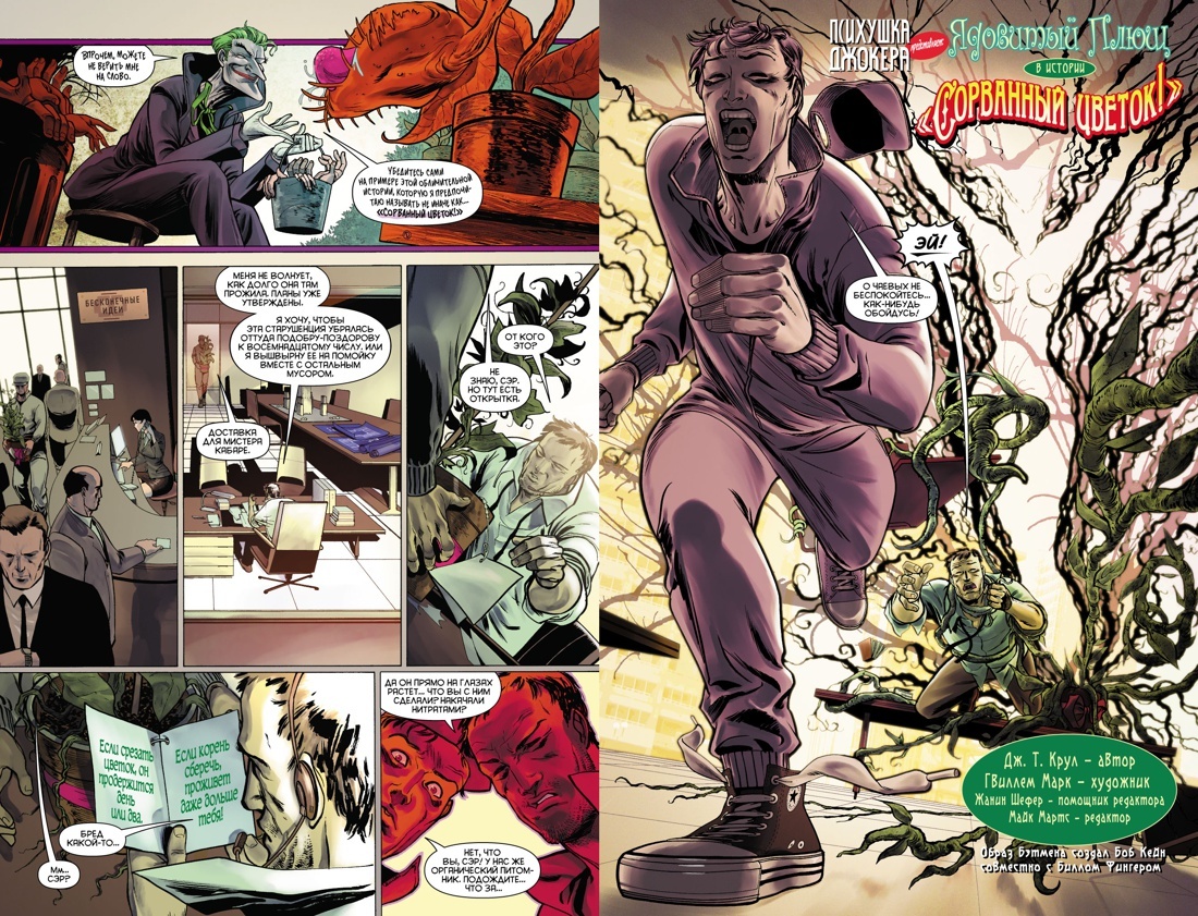 Джокер, прикармливая хищные цветы в своём садике, с нескрываемым сарказмом ко всем участникам истории травит байку о том, как Ядовитый Плющ схлестнулась с нечистыми на руку застройщиками. В погоне за лёгкими деньгами дельцы задумали уничтожить природный ландшафт ради стройки, но вместо зелёных банкнот получили весточку от зеленоглазой смерти. Даже Бэтмену не по зубам ростки Плюща, а уж Джокер без инсектицида под рукой не вспоминает тот случай...