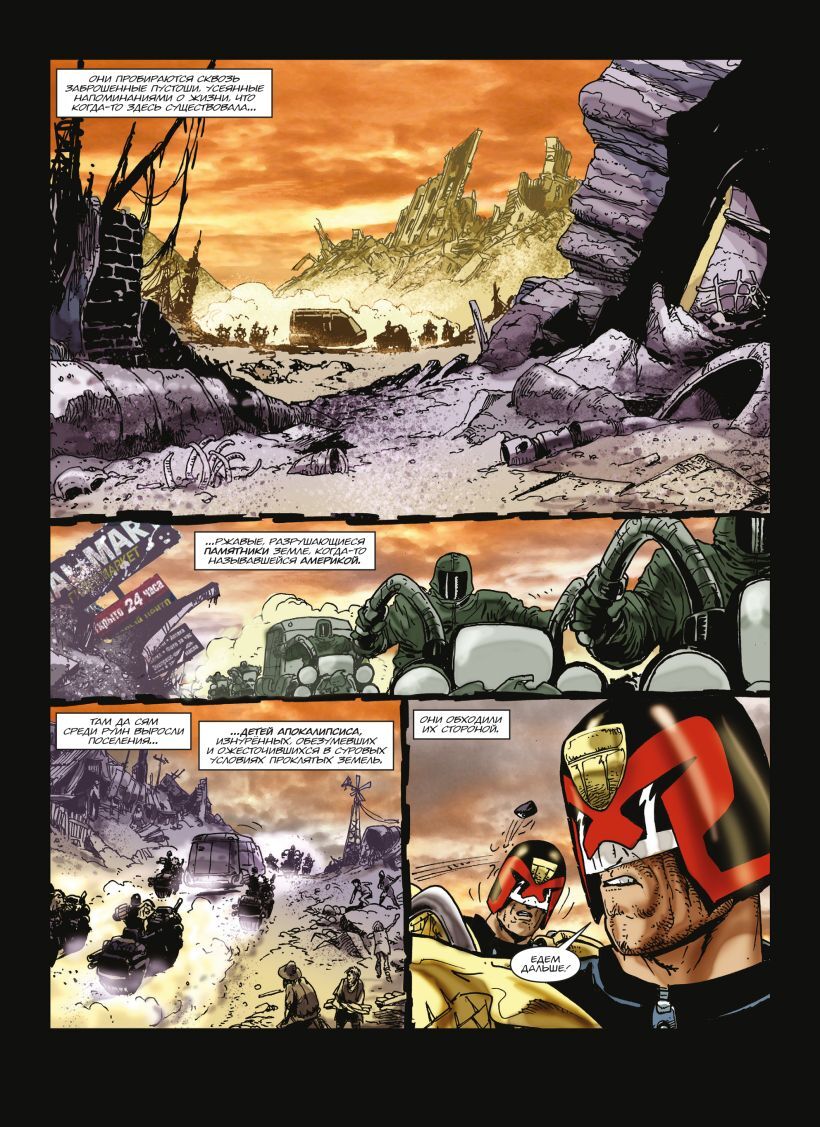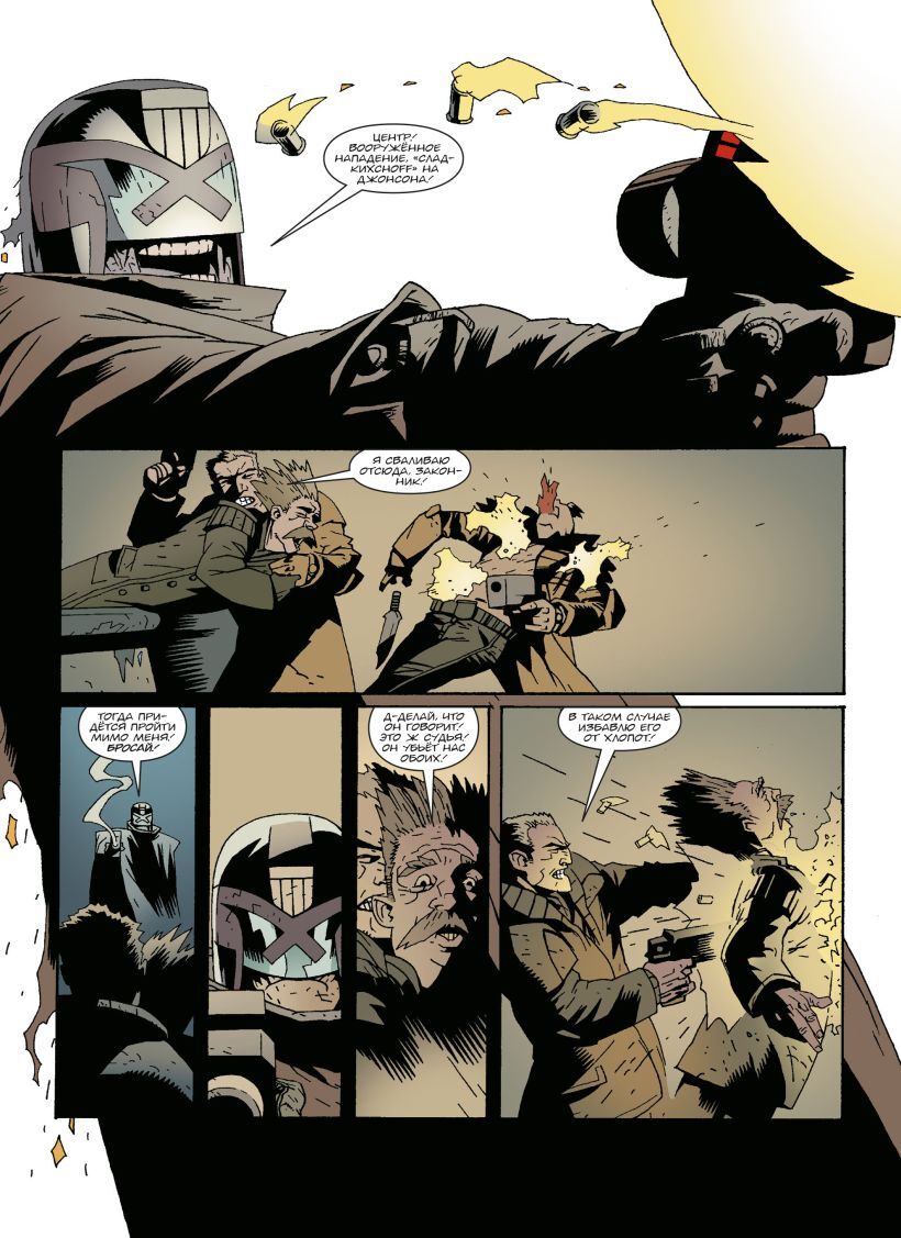 Вы увидите расцвет новой системы мгновенного правосудия, узнаете, как судьи пришли к власти по всему миру, а Америка превратилась в выжженную пустыню с тремя городами-гигантами на побережьях. И вдобавок выясните правду о происхождении самого Джо Дредда и его брата-клона Рико и их первой миссии на улицах огромного города будущего...